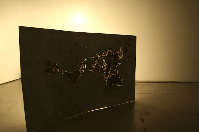 I drilled point-to-point a world map inspired by the Fuller's Dymaxion Map on the metal foil and I lit the foil with a spotlight to make the holes drawing appearing as a constellation.